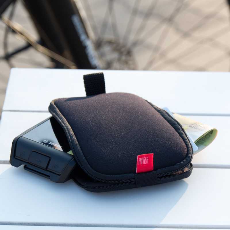Our small protective bag is a real all-rounder in terms of bike accessories and bike accessories. If the e-bike on-board computer is removed from the e-bike when not in use, it can be stored in no time in the padded neoprene bag and is reliably protected from dust and scratches. Intended as a protective cover for e-bike displays, the bag can of course also be used for all other detachable devices.